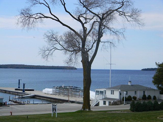 Delightful second floor unit with incredible views of Eagle Harbor, Peninsula State Park and Horseshoe Island. The second building in on the south driveway offers pretty much the same view as the front buildings without the road noise. Unit has been remodeled and upgraded with quite a few built-in cabinets, solid surface counters and sinks in kitchen and baths and some newer flooring. Most furnishings are included. Large fieldstone fireplace, vaulted ceilings and huge deck overlooking the bay, nice pool and lounge area.