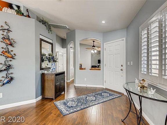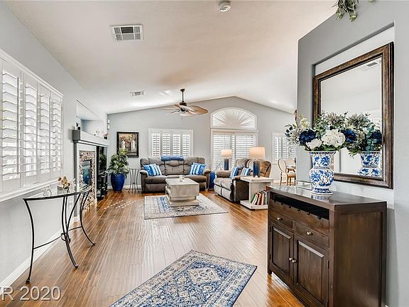 Location, Location!! Nearby Summerlin Without The Fees!! Short Distance To Bishop Gorman High School. Pride Of Ownership Shows In This Gorgeous 2BD W/Office/2BA Single Story With A Sparkling Pool In A Gated Community. Popular Open Floor Plan With Pitched Ceilings To Open Up Rooms Even More. Newer Windows With Shutters, Lovely Engineered Wood Flooring, Granite Kitchen Extended Counters & Island, Stainless Steel Appliances, Stone Surround Fireplace, Large Bedrooms, Master With En-Suite Bath, Ceiling Fans, Decorative Security Doors, Desert Landscaping, Rear Yard Pebble Tech Decking, Driveway With Decorative Pavers, New Tankless Water Heater, And So Much More!!