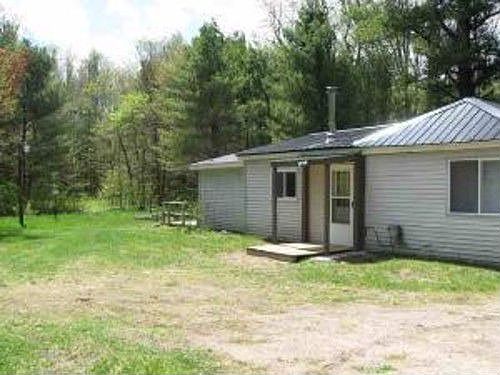 Cute one Bedroom Cabin on one acre across the street from State land and 100yds away to main trail artery. Newer 2 Car garage. New bathroom and well pump, new windows, ready to enjoy...Great starter home or getaway... Land Contract Terms possible...Additional property may be available...