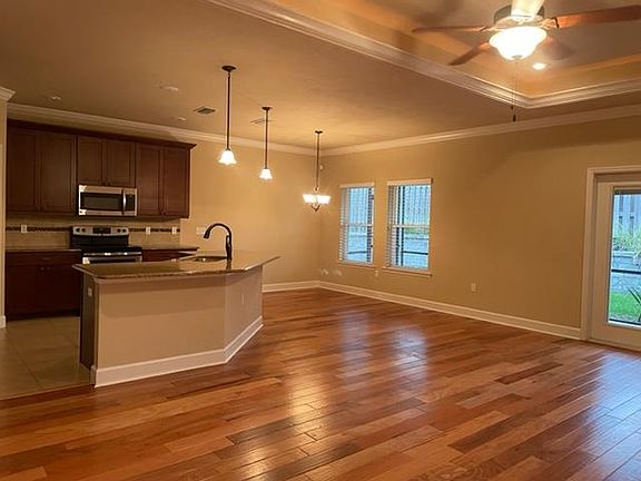 This luxury home is ready for your family. Move in ready, the beautiful home at Ellis Park has 4 bedrooms, 3 bathrooms. open concept family room, boasting trey ceiling w/ambient lighting and ceiling fan as well as beautiful wood flooring, dream kitchen with 42" wood cabinets, Quartz counters, upgraded appliances. Master Bedroom with door to screened patio, spacious master bath and walk-in closet. Three other bedrooms with two full bathrooms and lots of closets space. Great schools all nearby. Community pool also playground. Nice 2 car garage. No cat, one small dog ok with dog deposit and dog fee Seeking credit score 650 and up. Owner pays for HOA, HOA maintain front lawn, tenants will need to maintain the tree/bushes & back yard. Tenants pay for Electric/Water/Internet