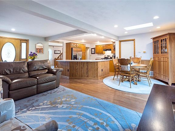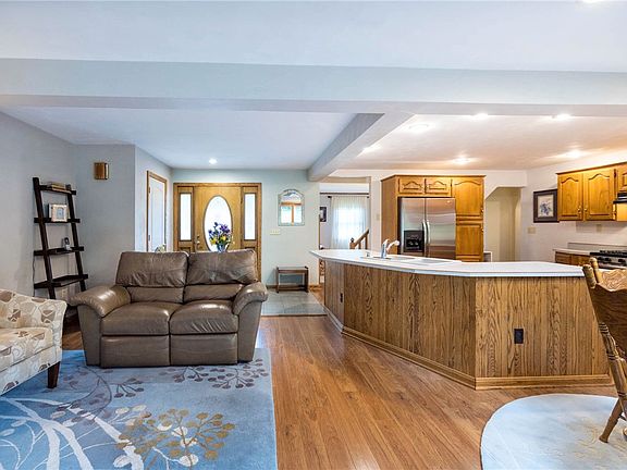 This outstanding home boasts amenities galore including a living room and sitting area with brand new carpeting, custom kitchen with stainless appliances, and breakfast bar, Inviting family room, First fl master bedroom & laundry, 2 additional cozy bedrooms upstairs, fabulous 2nd floor bath with heated floors, Oversized 2 car garage, picnic pavilion w/ a stamped concrete floor and metal roof, shed, wonderful deck, lush landscaping, Koi pond and more! All situated on a beautiful 1.5 acre lot!