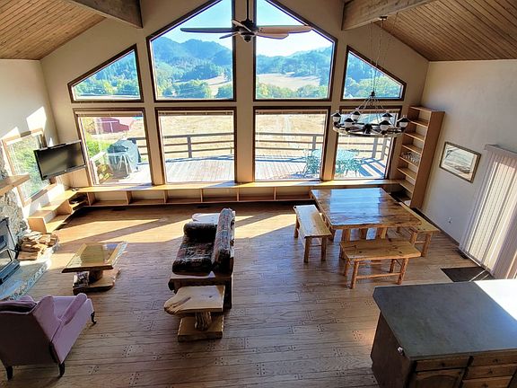 Two nice homes and over 170 acres! Most is open pasture and suitable for farming, horses, or cattle. There are irrigation rights from the year-round creek that runs along the border of the property. There is also a pond that can be used as a reservoir. Property is fenced and cross-fenced. There is a large barn and several other outbuildings. Behind the homes it is forested and borders BLM land. This is a perfect multi-family set up and/or income producing farm. Sq. ft. is for both homes