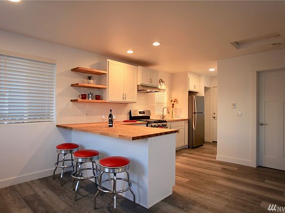 Unique opportunity to own a mixed use property, use as residential, commercial or both.Great little house with new paint, flooring, cabinets, appliances, fixtures, window coverings and decks. Super efficient and easy to maintain 1 bd, 1 ba. with private back deck and room for a garden.Detached garage is almost 800 sf with high ceilings and two roll-up doors on the alley. Come take a look at all the custom features incuding custom counters and new stacked washer and dryer. Ask about home warranty