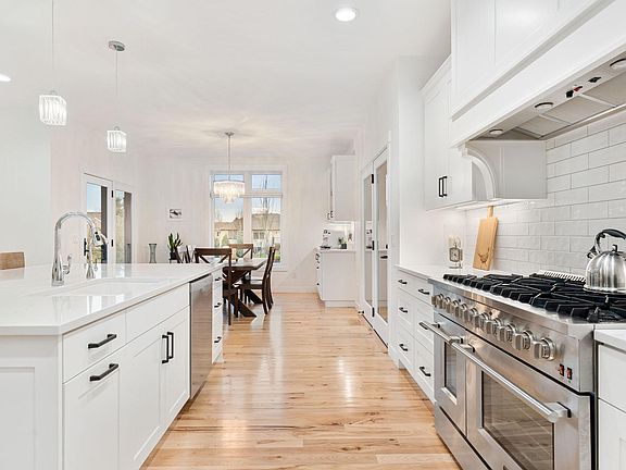 New to market is this pristine, recently completed, custom home by Anderson Construction. Bright and open main level living space bathed in natural light and real hardwoods, designed for effortless entertaining and everyday living. The chef's kitchen offers top-of-the-line appliances, premium finishes, and abundant counter and cabinet space—perfect for culinary enthusiasts. Luxurious primary suite with separate tub and shower - a tranquil retreat for restful nights and relaxed mornings. Additional bedroom with en suite on the main level featuring a private bath and walk-in closet. Four of the five bedrooms have large walk-in closets, offering ample organization space. Enjoy seamless access to the outdoors via a maintenance-free composite deck and a cozy 3-season porch. The three-car climate-controlled garage is insulated and heated for year-round comfort and additional workspace. Come explore all this home has to offer!