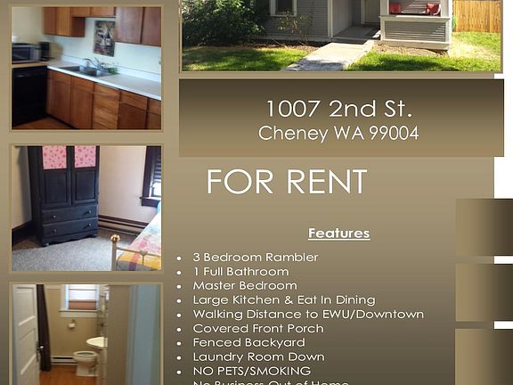 Walking distance to EWU and downtown businesses. Amazing location! Covered front & back porches. 3 bed/1 bath, large eat in kitchen. Laundry on site. This home is Cute & Clean! No pets of any kind, Summer lawn care included. No businesses out of home. No smoking of any substance inside the residence. Owner is a licensed real estate broker in the state of Washington. NO PETS/SMOKING or businesses out of home. 1 year lease. Owner will pay lawn care. Tennant pays all utilities.
