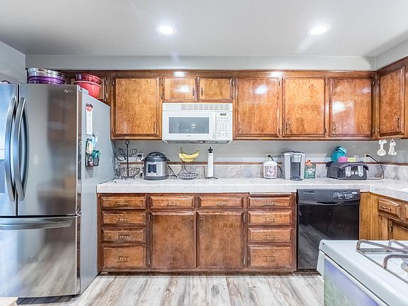 The perfect blend of convenience and comfort in the established Layton Oaks Subdivision! Featuring a welcoming shade tree in the front yard to stay cool during summer! Step inside and find a spacious and open living area, perfect for relaxation and entertainment. Enjoy the cozy wood stove during the cooler evenings! Beautifully updated kitchen, complete with a walk in pantry for all your culinary needs. This home includes 3 comfortable bedrooms and 2 full bathrooms! Step outside onto the covered patio and enjoy the low maintenance, paved backyard with a charming fire pit. Additional storage shed for tools and equipment provided!