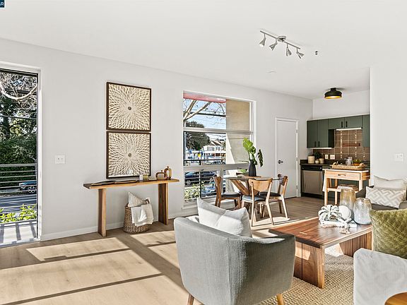 This rare end-unit in the sought after and well maintained Green City Lofts in Emeryville boasts floor to ceiling windows, an open floor plan and large balcony. This 1 bedroom 1 bath + BONUS office space is centrally located to paths connecting to shopping, dining and public transportation with plenty of natural light, new luxury vinyl floors with radiant heating, new light fixtures throughout, updated kitchen with designer tile and backsplash. In addition, there is a walk-in pantry with extra storage and an in-unit laundry! The bedroom feels inviting with a corner window and large walk-in closet. The bathroom has a dual vanity and shower over tub. The complex boasts newer construction, open communal patio with rosemary and citrus trees. Secured entry and parking, elevator and Amazon lockers. This location is close to everything. Upscale shopping, restaurants, movies and minutes away from the Emeryville Marina where after a nice experience along the waterfront, you can grab an Original Mai Tai at Trader Vic’s while enjoying the view of the San Francisco skyline. OPEN SUN 1-4.