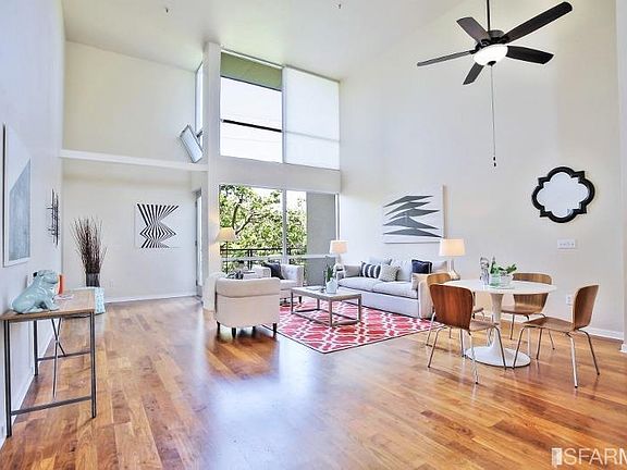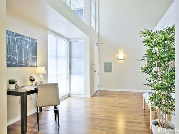 2 bed/2 bath loft in the Green City Lofts has breathtaking floor-to-ceiling windows and soaring ceilings. The dining room marks the transition to a modern, well-appointed kitchen with granite countertops, stainless steel appliances and ample cabinet space. Behind the kitchen is a study that can be used as a home office or reading nook. A bedroom and full bath complete the main floor. Upstairs, the mezzanine loft is a large bedroom, full bath, walk-in closet with shelving and an in unit washer/dryer. The property also includes secure garage parking for 1 car. Your new home is a short walk to local shops and restaurants and easy access to major freeways and transit.