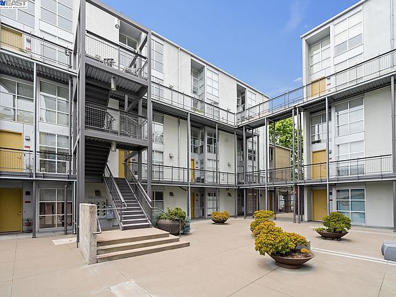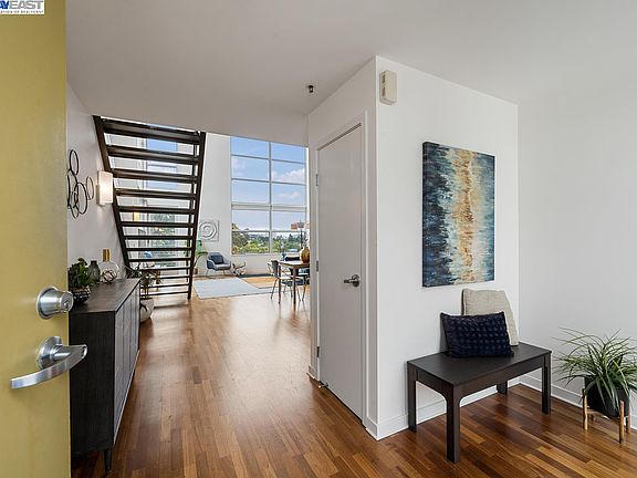 Stunning views await you at the renowned Green City Lofts. This top floor corner condominium is bright and sunny home and features a loft-style 1 bed, 1.5 bath, . Boasts soaring 20ft ceilings, and expansive windows with VIEWS of Downtown Oakland, Mt. Tam, Golden Gate Bridge, Bay Bridge, Alcatraz and the light house. An open and airy floorplan that features several creative spaces and an open-concept kitchen. The loft-bedroom suite has its own bathroom and walk-in closet. The home features, hardwood floors w/ radiant heat. There are e-vehicle charging ports available in the underground garage and the building far exceed California's energy efficiency standards. Aptly named, this complex is recognized for its "green" principles and features a loft-style 1 bed, 1.5 bath, corner-unit condominium. In addition to the use of recycled and sustainable materials, healthy interior environments, and native landscaping this unit is perfectly situated on the cusp of Oakland/Emeryville, this property is at the doorstep of Bay Street where you can find an array of storefronts, dining, and art. With a WalkScore® of 94 and easy access to BART and highways 880 & 580, this location is an eco-friendly commuter's paradise!