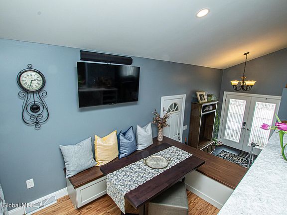 Summer days will surely be anticipated in this large and fully fenced backyard- featuring a patio with wood burning fireplace and inground pool. The finished lower level offers a cozy family room, bar, and office space, as well as additional rooms/laundry access. Located in the Mohonasen CSD.