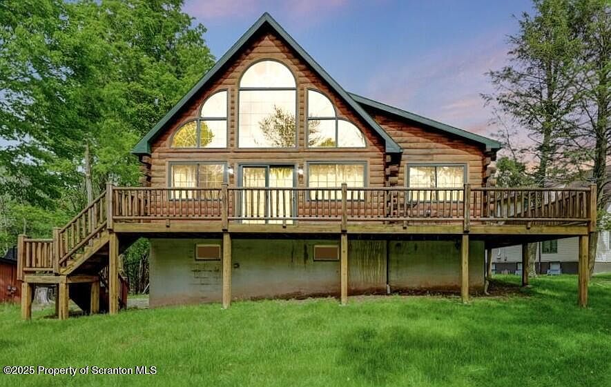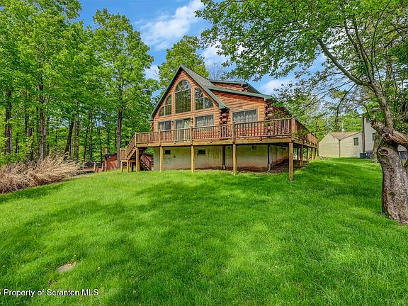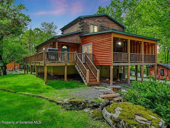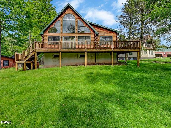 Welcome Home to this fully finished, fully FURNISHED 3 bedroom, 3 bath beautiful, rustic style Log Chalet located in one of Lake Wallenpaupack's finest amenity-filled communities: Wallenpaupack Lake Estates! Conveniently located near one of the community entrances and on a quiet cul-de-sac, you'll only need to make one turn before reaching the spacious, level driveway with enough room for multiple vehicles! This home is Move-In ready and comes FULLY FURNISHED, including a relaxing Hot Tub, gorgeously inviting Jacuzzi, and your own PRIVATE Sauna! With a Full Bathroom on every floor, your friends and family will have plenty of room to spread out and get ready for the day's activities. De-stress and unwind after a long day at your outdoor firepit or in your hot tub watching your Smart TV on your spacious, newly constructed covered deck! The finished lower level has plenty of room for guests as well as gaming activities, or upgrade your game nights and easily add a pool table through your walk-out access! Upgrades to home include a new Tankless Water Heater, Smart Thermostats which control both HVAC and Living Room Fireplace, Central Air and Heat, and PEX plumbing throughout entire home. Enjoy your resort-like lifestyle in the confines of your own home, or explore all of the amenities the WLE community has to offer, including access to multiple lakes for both fishing and boating, beaches, swimming pools (indoor and outdoor), lodges, a well-equipped, expansive Fitness Center and a fun game room. The community also offers exclusive access to a private Marina on beautiful Lake Wallenpaupack, which happens to be conveniently located only 4 blocks from this home! Schedule your private showing today and begin enjoying all that the Lake Wallenpaupack Region and the Poconos have to offer!