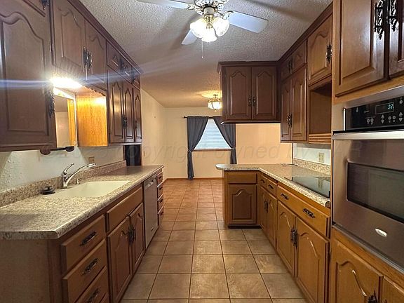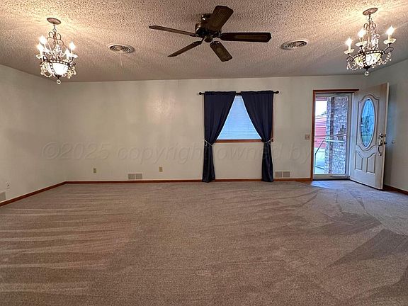 This brick home offers solid construction and great potential with two nice-sized bedrooms, two baths, and abundant storage throughout. The spacious living area is highlighted by elegant chandeliers, fresh carpet, and large windows that provide natural light. The kitchen features an efficient galley layout with ample cabinetry, long counters, and a built-in cooktop.