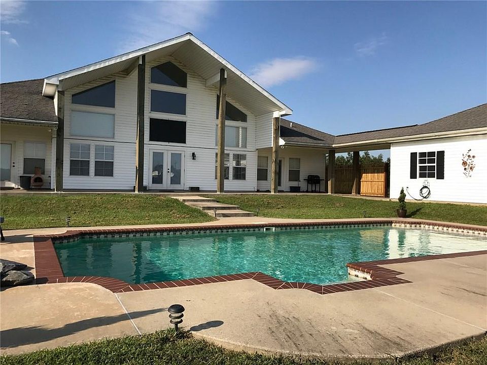 Exquisite 3 bedroom, 3.5 bath home on nearly three acres in South Lake Charles. With over 3,000 square feet of living area, this home features soaring ceilings in the open kitchen and living areas with a large second-floor loft overlooking the beauty. Granite countertops in the kitchen, spacious utility room and gorgeous entertainment center in living room stays. Two sizeable master suites, including two garden garden tubs, with the third bedroom also having its own private bath. Both master suites have private entrances to the covered back patio and beautifully fenced inground Gunite pool. Storage galore in two buildings that remain with the property and double garage with extra roll-up door for your ATV. Truly a relaxing and serene country setting close to town. Call for your private showing!