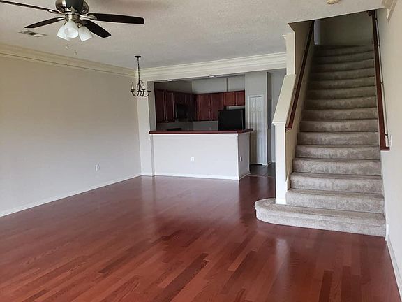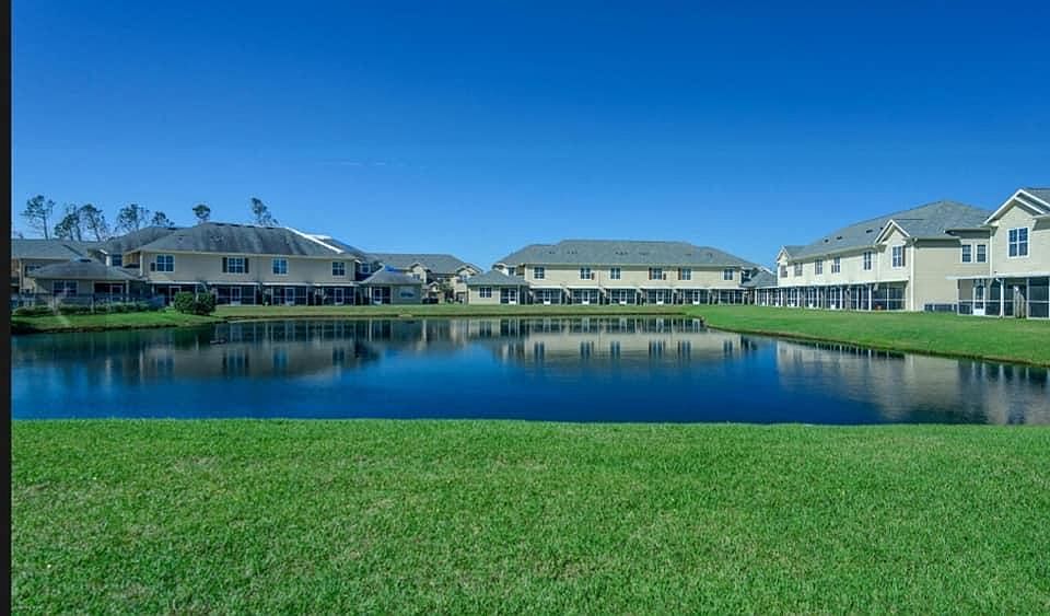 2 story lakefront town home in gated community which has a community pool and clubhouse. This is a 2 bedroom with 2.5 baths. Raised ceilings and crown molding. Bedrooms are spacious w/walk in closets and full baths in each bedroom. Master bath has double vanity and shower/garden tub. The upstairs also has an open room area for an office/tv lounge. 1/2 bath downstairs. Kitchen has built in microwave, refrigerator w/ice maker, electric stove/oven. Kitchen has spacious granite counter tops with a breakfast bar and opens up to dining room area. Back screened porch with view of lake and fountain. Has washer/dryer room and one car garage with driveway for another car. 12 month lease term