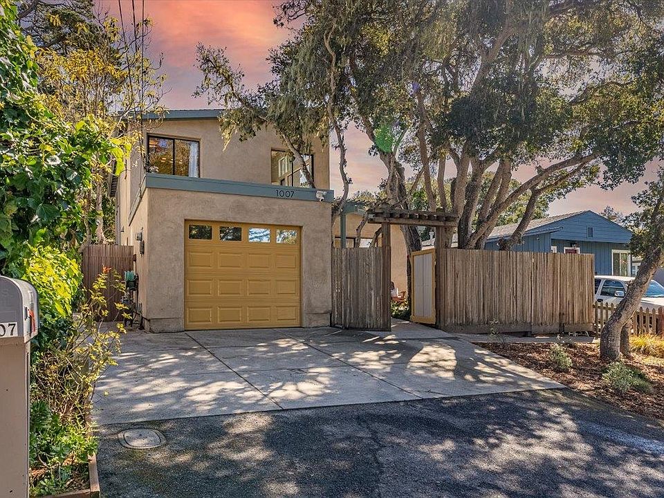 Welcome to this high quality custom built home in Pacific Grove designed and built by a residential building designer in 2003. This 2000 sf plus, 2 story, 3 bedroom, 3 bath home has beautiful travertine flooring throughout the lower level, a Quarry tile stairway, exotic hardwood flooring in the bedrooms and metallic epoxy flooring in the primary bedroom. With a stucco exterior and veneer plaster inside it is majestic. Super comfortable heating is provided by Hydronic Radiant Heat in most floors and some walls and ceiling. The many skylights make for a warm glow of natural lighting throughout the home. The downstairs Family Room is large w/ high ceilings with direct access to the backyard patio that features a truly unique slender curved concrete wall that surrounds a seating area.Tucked away in a backyard garden there is a fully permitted 120 sf structure that can be your private office away from it all or extra bedroom, w/heating & electricity. Peeks of the bay from all of the upper level bedrooms. Close to shopping & top rated schools.