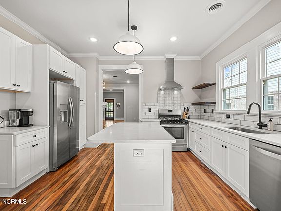 Welcome to historic charm in Wilson! Embrace the southern lifestyle in this bright and cozy, meticulously renovated bungalow! Blending timeless charm with modern elegance, you're greeted by Heart Pine flooring and soaring ceilings throughout this two bed, two full bath home. It offers both a formal dining room and an in-eat kitchen that seamlessly flows out to the detached deck and backyard that sets the ideal stage for entertaining! The primary bedroom offers a spacious walk-in closet with a luxurious en-suite bathroom featuring dual vanities and an open walk in shower! Located in one of the most desirable locations in Wilson, it offers walkability or biking to Wilson's most renowned attractions. With downtown Wilson being minutes away, residents can indulge in Wilson's best dining, breweries, and entertainment options. Schedule your showing today!