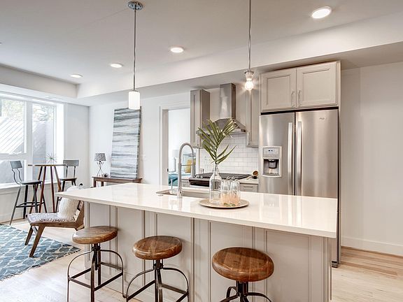 Newly Constructed Condo ; 2 BD; 2 BA ; Off-street parking White oak wide plank hardwood floors, Custom lighting, Oversized windows, Open floor plan, Washer & Dryer in unit, Central heat and A/C, Quartz counters, Custom cabinetry, Glass tile backsplash, Stainless steel appliances, Built-in microwave, Island with seating for three, Quartz vanity, marble tiling, Glass enclosed shower, Double sinks, Abundant storage, Off-street parking; Location: Metro: 0.3 miles to Rhode Island Ave Metro (Red Line) Rent: $2,695 Deposit: one month's rent; Available: July 9; Tenant Responsible for: Electric, Cable, Phone, & Internet; Pets: Case-by-Case Basis with pet rent