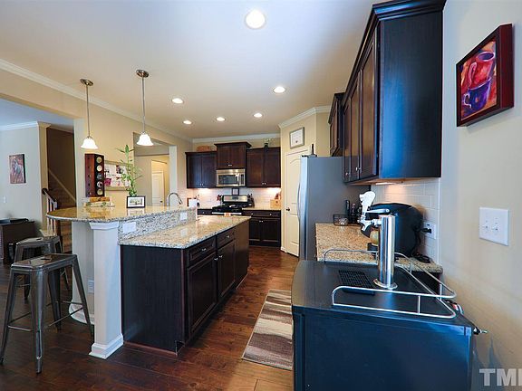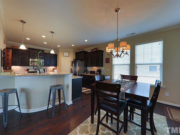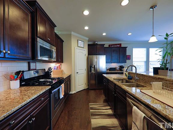 Built in '14, this gem greets you w/natural light and all the finishes you're looking for, but don't typically get at this price. Huge granite island is the kitchen centerpiece along w/SS appliances, incl/gas range, tile backsplash, pendant lighting. Spacious breakfast nook flows to family room w/FP. MBR has trey ceiling, tile shower, garden tub, sizable WIC. No carpet downstairs. Level, fenced BY w/patio. Community pool/playground. Downtown Raleigh 15 mins away. Short drive to shopping, dining, greenway