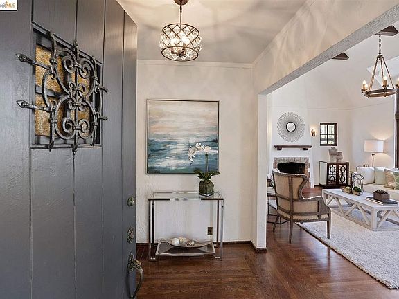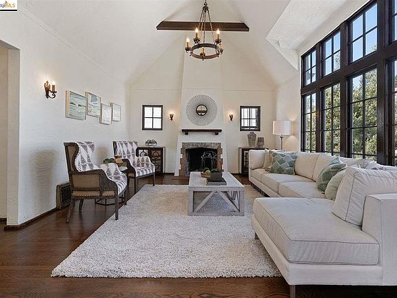 This beautiful Tudor boasts a spacious formal living room with a soaring, wood beam ceiling, a handsome stone fireplace, and original wrought iron wall sconces and chandelier. Here, a magnificent wall of windows defines the room, streaming in an abundance of natural light throughout the day. Across the foyer you'll find French doors that open into the formal dining room, which features the original chandelier and wall sconces. This single level home also offers an updated bath and an eat-in galley kitchen. Clean white cabinets with quartz counter tops and stainless steel appliances provide the appeal and function of a modern home. A side door leads you out to a level, landscaped back yard with a fresh lawn and a concrete tile patio. Plenty of storage in the partial basement-- also ideal for a workshop. A large 2-car garage w/interior access completes the home. Half a block from top-rated elementary, and near shops and freeway.