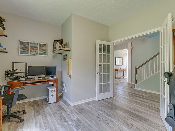 Wow! Back yard w/ Common Area, wooded tree-line & quaint creek! Two private home offices for dual Zoom calls. Main level Flex Room. Mid-level Bonus. Huge 5th BR w/ bathroom on upper-story! Great "home-school" house! Lots of rooms to work & learn remote! Special Financing Incentives available on this property from SIRVA Mortgage.
