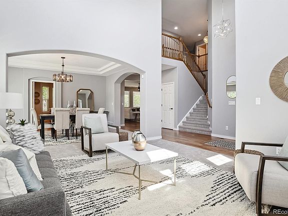 Price Improvement of $25K! Stunning and move in condition! Nestled in a serene cul-de-sac, this beautiful home has a flowing layout & a spacious PRIVATE backyard with gorgeous mature landscaping. The covered patio provides an ideal space for entertaining. Inside, the home just glows in natural sunlight, creating a bright & welcoming atmosphere. It has stunning hardwoods throughout! The formal living and dining rooms lead to a spacious kitchen equipped with dark maple cabinets, stainless steel appliances, a gas stovetop, double oven, and quartz countertops with a glass tile backsplash. Enjoy coffee at the breakfast counter, or watch the birds from your eat in kitchen bay window. The great room, featuring a double-sided fireplace, can comfortably accommodate large furniture. A versatile bonus room on the main floor can serve as a fifth bedroom, office, playroom, or workout area. The main floor laundry room includes ample counter space & comes with a washer & dryer. It also has newer glass backsplash and quartz counters. Upstairs, the master suite is a true retreat! Complete with a private sitting area with its own fireplace, you have a quiet space to relax & unwind. It also hosts an expansive five-piece bathroom featuring a fitted walk-through closet! Additionally, there are three more bedrooms upstairs, two of which share a Jack-and-Jill bathroom, and another with the use of the hall bath. (Both bathrooms have been updated with new countertops, & backsplash) The recent updates all completed in 2019! Those also include new stone around the fireplace, fresh interior paint, new carpet with extra thick pad throughout. In 2022, the upstairs furnace was replaced and a new water softener was installed in 2023. WITH OVER $50,000 IN RECENT RENOVATIONS, this home offers an easy, beautiful, & move in ready appeal! The home is a quick 5 minute drive to the Castle Rock outlet mall & only a 10 minute drive to downtown Castle Rock. Easy access to Park Meadows, DTC, & CO Springs.