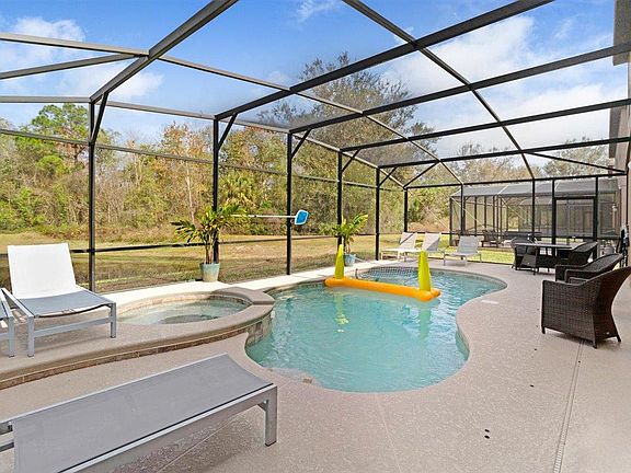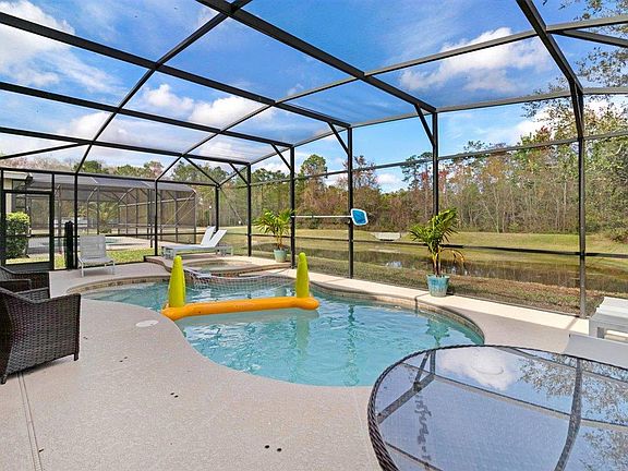 Beautiful 6 bedroom, 8 bathroom solar powered home (no - low electric bills!), with swimming pool, spa in a gated community, fully furnished home (or can be vacant) available March 15.Each bedroom has its own en suite bathroom. Shopping very close by (one mile to Aldi's or Publix). Shared accommodations would be considered with parking limitations in mind. Minutes from Champion's Gate, 15 minutes from Walt Disney World. The house may be rented for 6 or more months. Its solar panels provide enough power for basic electrical needs. Continuous use of pool and spa heat may result in monthly electric charges up to an additional $300/month. There is a two car garage and enough space in the driveway for two regular sized or three small sized vehicles. The community does not allow parking on the street. The space is a smoke free, pet free hypoallergenic environment. It comes fully furnished but partial or no furnishing arrangements can be made. Lease terms available from six months to one year with slightly higher rents for less than one year leases. Pets permitted with an additional $1200 security deposit.