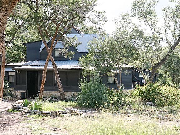 Grab this great deal before we rent it or list it! Last price drop before renting or listing with Realtor! It's not on MLS. The Zestimate is skewed and does not consider many upgrades, including the additional 1000 SF building. Would make a great short term rental property! Fully furnished. It is a Fully fenced 1.11-acre, one-of-a-kind property! Well-maintained home with rainwater system, solar panels, longleaf pine floors, recently re-modeled island kitchen, Kitchenaid commercial style gas stove, refrigerator, and dishwasher with extended warranty. Shiplap throughout living room, recently updated exterior- including paint, updated farmhouse lighting & woodwork, master up with study area and oversized walk-in-closet, two screened-in porches (490sqft), two decks, formal dining, entry parlor, office nook, landscaped acre, raised garden beds. A separate building of approximately 1000 sq ft, with many possibilities: home office, guest apartment/game room, studio, workshop, etc. Solar panels on homes reduce electric bills enormously! 30,000-gallon rainwater harvesting system with well for irrigation Blanco River Park Access! Complete with your own flock of laying hens! If you are looking for a long term lease, let us know.