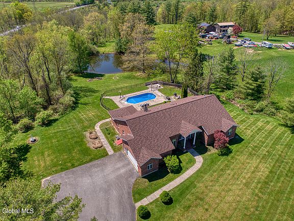 Welcome to this sprawling brick ranch home situated on 3.58 majestic acres! Delaware boasts a New Roof 2023 & an ideal open floor plan w/spacious rms, highlighted w/vaulted ceilings, skylights & hardwoods. The eat-in kitchen is perfect for entertaining w/its vast counters, SS appliances & is open to the beautiful family rm w/wood burning FP. The Primary Suite has a double sided gas FP, private full bath, walk-in closet & bonus office/flex space. Plus, there is 1st Fl laundry, 2 car att garage & its huge lower level is finished w/a rec rm, gym & office! The stunning grounds are beautifully landscaped & feature an in-ground heated pool, deck & peaceful views of the pond! Enjoy the country privacy of this beautiful property while just mins from the ''Y'' & Bethlehem's 4 Corners Town Center!