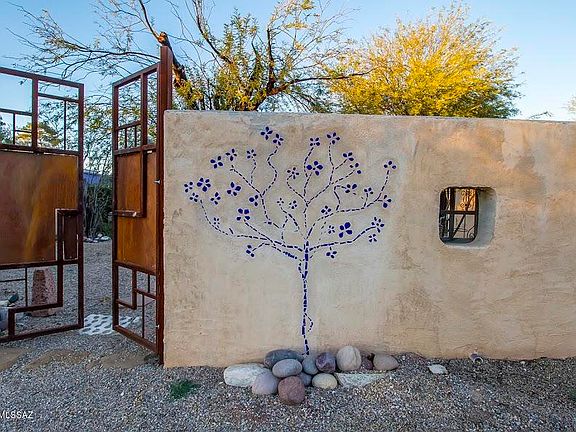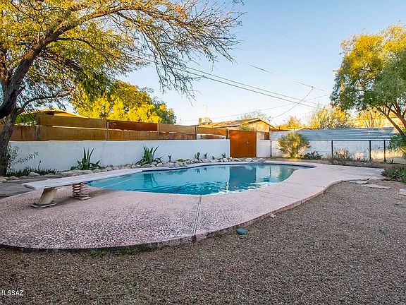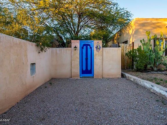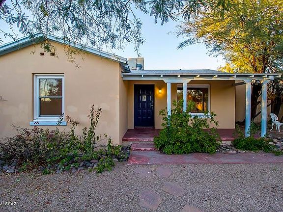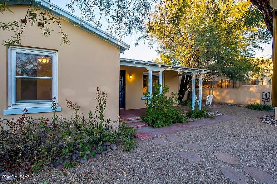 Absolutely charming 40's bungalow with sparkling pool! From the minute you enter the artistic custom front gate, you will be charmed. Lovely walled yards, ffront and back. This can be your retreat, your sanctuary. Saltillo and concrete flooring, spacious greatroom for living and dining, Mexican tile and stainless appliances in the roomy kitchen, which opens to an Arizona room w/ fireplace! AC plus evap! Two original bedrooms and a hall bath on one side, stunning master suite on the other! The master's french doors take you right out to the pool. Life doesn't get much better than this! The cozy outdoor lounge area is shaded, and there is room to add a planter and some raised beds for you urban farmers. Bikescore is 95 (biker's paradise!) Close to UA, downtown, Banner Medical