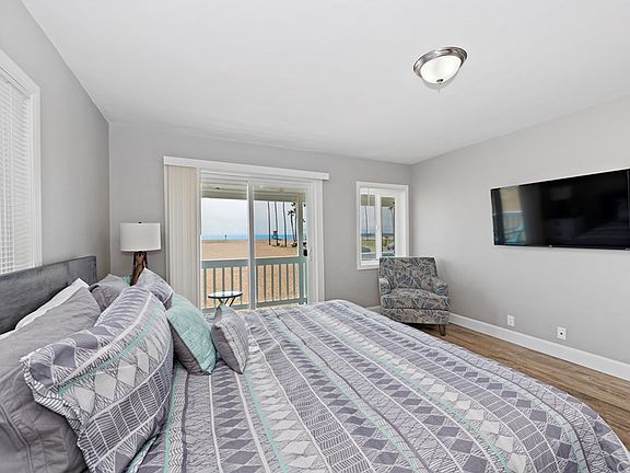 769.1599 with questions. If you are interested in learning how to own a vacation home that earns you positive income that you can also use and enjoy yourself please contact us. Call Shevy at 949.769. Ocean front living between the Balboa Pier and the wedge. Professionally designed and newly remodeled two bedroom condo. Enjoy all ocean front living on the Peninsula has to offer including the beach, the waves, beautiful sunsets, the pier and park. Ample entertainment options like the Balboa Fun Zone, ferry to Balboa Island, shops and great restaurants are just a short walk away. Your own porch right on the beach, ocean view of the world famous wedge to the Balboa Pier, you can't beat this location. Boogie board, surf, bike, stroll the pier and board walk, play at the ocean front park, grab a coffee at one of the many cafe's, or a bite to eat one of the excellent restaurants. There are 3 other ocean front units available in this building, one right across the hall and two below, this property is perfect for a multi-family vacation or a romantic getaway.Prices vary by season. Inquire for details.