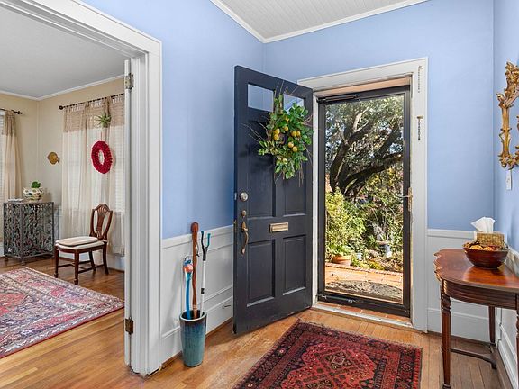 On offer, a stately two-story brick colonial on one of downtown Conway's most prestigious streets.  Nearly an acre of land with more than 3,700 heated square feet, this 6-bed 2.5 bath home with no HOA is the opportunity for which you've been waiting.  On arriving, you'll notice the street-side magnificent Live Oaks draped in Spanish Moss, and the solid construction style of a century ago. The foyer and adjacent reception rooms feature historic chandeliers and 10' tongue-and-groove ceilings, wainscot, and built-in cabinetry that continue through the ground floor. Note the spacious sitting room with gas fireplace and formal dining room for entertaining guests. A front Carolina room with ample windows provides access to the side yard and an adjacent home-office grants separate keyed access.  These, with French doors, offer layout for commercial opportunities. The master bedroom of palatial dimensions includes a light-filled space with billowing curtains, a working fireplace with historic mantel, and en-suite bathroom with garden tub. A second spacious ground-floor bedroom includes a traditional bathroom with original subway tiles and facilities. Also on the ground floor is a traditional kitchen with solid wood cabinetry, walk-in pantry, ample storage space, and stainless-steel appliances including a gas range with additional manifolds. Original features retained include built-in features like a wall-cupboard-sheltered ironing board and pull-out cutting boards.  Large linen cupboard and coat closet. Off the kitchen a utility/ laundry room/limonaia with utility sink provides access to the back garden.  Upstairs are 4 spacious bedrooms, 3 with cathedral ceilings, and a full bathroom. Off the back patio is a 2-lot deep garden with large lawn space, dozens of mature 15' camellias and azaleas, rose beds, and plenty of room for building a pool, pool-house, or a get-away escape.  An original brick 1-car garage with storage and parking for 2, newly repaved, rounds out the property. This "Enchanted Camellia Forest," a birder's dream, is a rare, spacious property in the historic district not likely to be available again. A space for tranquility.  Square footage is approximate and not guaranteed. Buyers responsible for verification.