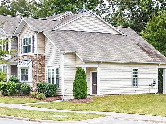 Beautifully maintained End Unit Townhome, 1st floor master bedroom all in a great location. Master bathroom upgraded tiled shower. New custom interior paint. Hardwoods in Living room and kitchen. Stainless steal appliances, walk-in pantry and separate dining area. Covered porch over looks woods, close to greenway. Amply parking. Community pool. Close to RTP, RDU airport, I-540 and shopping.