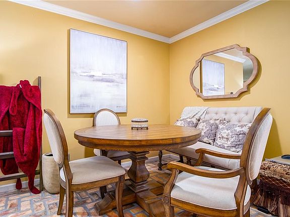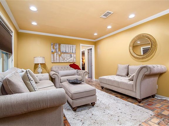 Nestled within a quite cul-de-sac, this exceptional 4-bedroom sanctuary seamlessly combines classic charm with modern luxuries. Immaculately maintained, the residence offers 4 spacious bedrooms, 3 full baths, and a half bath ensuring both comfort and impeccable style for family living. The living area features classic brick flooring, creating an inviting atmosphere as the foundation of the home. The gourmet kitchen is a culinary haven, boasting a breakfast bar, stainless steel appliances, updated cabinetry, granite countertops, and updated lighting. A convenient laundry/pantry is strategically positioned just off the kitchen for optimal functionality. The primary suite serves as a sizable retreat, featuring a soaking tub, and spacious walk-in closet. The split floor plan design provides privacy with three additional bedrooms and two full baths situated across the home from the primary suite. Step outside to the entertainer’s patio, an extended covered space complete with an outdoor kitchen, TV hook-up, and seating area – perfect for gatherings. The fully fenced backyard encompasses an in-ground pool, creating a personal oasis for private enjoyment. Bonus features include an unfinished bonus space with the potential for customization into a pool house, game room, or home office, providing direct access to the backyard. Additional outdoor advantages include green space for activities, outdoor storage for convenience, and a private courtyard entry accented by an iron gate and beautiful landscaping, enhancing the overall appeal of the property.