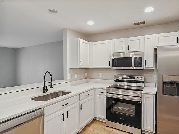 This freshly renovated townhome in The Peninsula offers 3 bedrooms, 2.5 bathrooms, and is fully upgraded, making it completely turnkey and ready for move-in. The open floor plan, highlighted by brand-new flooring, is perfect for entertaining friends and family. The kitchen features recently installed quartz countertops, along with updated appliances and refreshed hardware for a modern touch. The main level features an inviting living and dining area, complemented by a convenient powder room. Step through the French doors onto the back porch, ideal for morning coffee or al fresco dining. A spacious storage shed provides ample room for your belongings, keeping your home neat and organized.Upstairs, the spacious primary bedroom boasts vaulted ceilings, generous closet space, and an upgraded bathroom with new flooring and vanity. Two additional bedrooms upstairs share a bathroom, offering convenience and comfort for family or guests. The laundry room is also conveniently located on the second level. Additionally, this home is located less than 1 mile from Philip Simmons Elementary, Middle, and High Schools, all part of the highly sought-after Philip Simmons school system, providing exceptional educational opportunities for families.