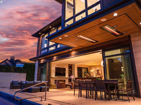 Experience the epitome of lakeside luxury living in this contemporary masterpiece nestled on the Oswego Lake. Crafted by the esteemed duo of John Tercek and Curt Olsen, this residence offers a harmonious blend of sophistication and comfort. From the seamless indoor-outdoor living spaces to the exquisite craftsmanship, every detail exudes elegance. Enjoy breathtaking views of the lake and captivating sunsets from the spacious main floor living area and step outside to the expansive patio with a minimalist pool and serene water feature, perfect for al fresco gatherings. Retreat to the tranquil primary suite with floor-to-ceiling windows, Venetian plaster walls, and a luxurious ensuite bath. With an elevator serving all floors, boat house with rooftop deck, and proximity to amenities, this is refined lakeside living at its finest.