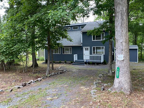 Get ready to say WOW! Come see this completely renovated 3 bedroom 2.5 bath home located in amenity filled Saw Creek Estates. This home has an open concept living room with a brick faced fireplace to cozy up to on those chilly pocono nights, a dining area and new kitchen with custom cabinets, granite countertops and new SS appliances. First floor has a spacious master bedroom with an en suite with beautiful tiled floors and shower. The main floor also features a laundry room/half bath. New flooring throughout is sure to please. The second floor provides tons of room with a large family room/loft, full bath and additional two nice sized bedrooms. Outside features include a huge deck for entertaining and a storage shed large enough for your equipment and toys.