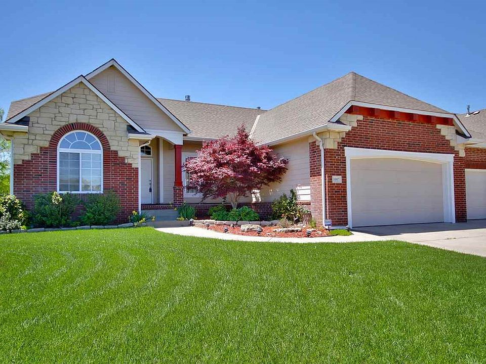When walking in to this five-bedroom home, you are welcomed with the views and ambiance, featuring a master suite with custom ceiling, living room and dining room with gas fireplace, and numerous windows to view the gorgeous landscaped backyard overlooking the neighborhood pond. Top of the line appliances, eating bar, walk-in pantry adjoins the large kitchen. The dining room has the same wonderful lake views. The basement houses an additional bedroom, workout room/bedroom, full bath, and storage. The family room is complete with its inviting custom built wet bar, wine cellar and gas fireplace. Entertain in style with the beautifully landscaped back yard with its outdoor fireplace, pergola, shaded patio, irrigation well and sprinkler system, pet friendly wrought iron fencing. Many activities are planned by Derby at High Park where the family can enjoy many sports activities, walks, fishing, listening to bands, watching fireworks, picnics, playgrounds, and feeding waterfowl. The Ashborough housing development also has stocked ponds for fishing, a community swimming pool for the residents, playground, and basketball court. Conveniently located near Derby's Rock River Rapids Water Park, Restaurants, and Shopping.