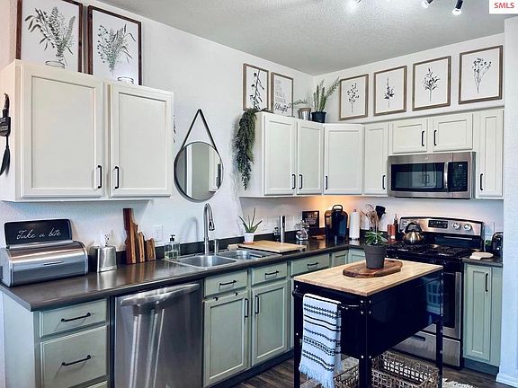 Great Investment! Step into this enchanting home through a charming double-arched gated entrance adorned with beautiful grapevines. The property boasts its very own mini vineyard, with lush white grape-producing vines cascading along the side fences. The well-kept modern farmhouse-style home exudes country charm and offers 1,858 square feet of living space, featuring three bedrooms, two and a half bathrooms, and a two-car garage. The airy and open-concept farmhouse-style interior is accentuated by luxurious LVP flooring and modern light fixtures that create a warm and inviting ambiance. The kitchen is a chef's dream, equipped with a gas stove top, stainless steel appliances, a butcher block island, and ample pantry space. Upstairs, the primary bedroom features a walk-in closet and French doors that open to a private balcony, perfect for enjoying a peaceful morning coffee. Situated in a sought-after neighborhood, the property provides direct access to the Ella Bike Trail and is conveniently located near parks, shopping destinations, local restaurants, breweries, and wineries. For outdoor enthusiasts, this home offers proximity to Lake Pend Oreille for water activities and the renowned Schweitzer Mountain Ski Resort, making it an ideal retreat for all seasons.