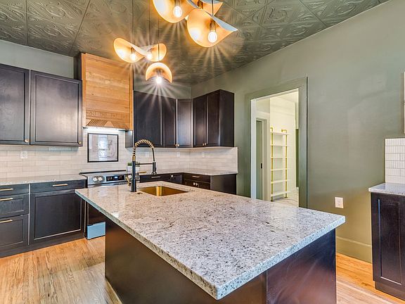 Discover the perfect blend of historic charm and modern updates at 1007 N. Faulkner, located just steps away from the Arkansas River in the highly sought-after Riverside community. This beautifully updated bungalow invites you in with a spacious front porch, a new roof and gutters, a detached garage, and a fenced yard—perfect for relaxing or entertaining. Inside, you’ll love the newly refinished hardwood floors, fresh paint, designer lighting, and a brand-new kitchen featuring bold cabinetry, sleek granite counters, a gold-tone sink, and a nod to the past with a vintage stove hood that sets the tone for this home’s unique personality. The living and dining spaces showcase show-stopping ceiling details and an original fireplace, creating a warm, inviting atmosphere. The main floor also offers two bedrooms with a Jack-and-Jill bathroom, a half bath with an antique dresser vanity, a pantry off the kitchen, and a laundry area for added convenience. Upstairs, retreat to a private primary suite with a walk-in closet and a luxurious bathroom featuring a stand-alone soaker tub, oversized shower, granite vanity, and private water closet—a true spa-like escape. This home artfully combines the best of old and new—from its bold, color-drenched rooms and modern LED lighting to its historic details—offering character you won’t find in cookie-cutter homes. Enjoy the walkable lifestyle Riverside is famous for with parks, Wichita history, and the river just steps away!