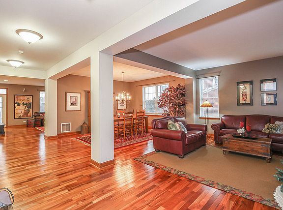 STUNNING!! 4-5 bedroom Foxford Hills Beauty nestled perfectly on an oversized corner lot! Gorgeous wood floors throughout main level! Open floor plan w/ stunning hues & over 3800+ sq ft! Chef''s Gourmet kitchen includes Commercial grade luxury stainless steel appliances, lux backsplash, island & 42" Hickory cabinets w/crown molding! Family Room w/amazing stone, gas start-wood burning fireplace! Fully fenced in yard has gorgeous paver patio! Spectacular Master ensuite with gorgeous stone fireplace, sitting room, WIC! LUX master bath w/dbl bowl vanity, separate shower and soaking tub! HUGE 2nd level bonus room could be 5th bedroom! Huge basement waiting for your ideas! Two water heaters - never run out of hot water! Three car tandem garage! Energy efficient tinted windows! Enjoy this amazing neighborhood while sitting on your FULL deep Front Porch! You will love this home! CLICK VIRTUAL TOUR to SEE MORE pictures & then click on FLOOR PLANS by level to experience the interactive tour!!!