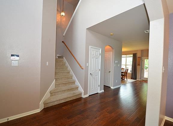 Beautiful 4 bedroom home nestled at the end of an over sized culdesac lot adjacent to a greenbelt. Upgrades include granite counters & backsplash, lighting, Moen fixtures, SS appliances, 5 burner gas range, and wood floors downstairs. Full sprinkler system & updated landscaping, insulated shed with window- conveys, covered patio, and beautiful backyard. Storage galore, all of the bedrooms have walk in closets.