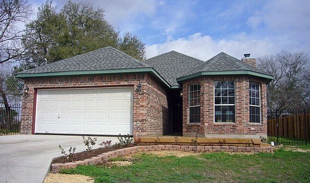 New, never been lived in! Great lot next to horse farm; pastoral view. Huge oak tree, privacy fence, covered porch, deck & fire pit. Easy care stained concrete floors & tile. Fireplace w/Texas stone surround also used as backsplash in kitchen. Granite counters. Fabulous tiled master shower, separate tub. 13 seer Heatpump, tankless waterheater, beautiful appointments & fixtures. Live in Lockhart & enjoy peace & quiet, easy lifestyle with everything an easy drive (no heavy traffic).