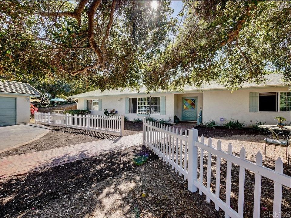 This home in desirable South Fallbrook is sited on over 1 acre of highly usable flat or gently sloped land with solar. Bright, tidy and clean, this 3 BR/2BA home with bonus den/office has been nicely updated yet it still retains enchanting mid-century charm. Open-plan living room adjoins the kitchen. Stylishly updated kitchen & baths. Brick paver walkway. 2 car garage. RV parking possible. Per city horses are allowed on property. This charming ranch style home in desirable South Fallbrook. Equipment: Dryer, Washer Sewer: Septic Installed