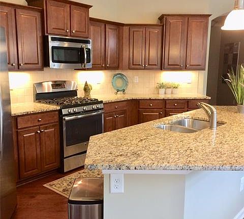 - Interior Features: Attic Stairs Pulldown, Kitchen Island, Pantry, Tray Ceiling, Open Floorplan, Split BR Plan