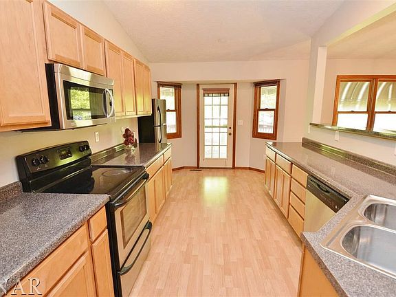 Incredible ranch with open floor plan! Updated kitchen features newer maple cabinets, countertops with raised bar, laminate floors & stainless appliances. Spacious family room boasts cathedral ceilings, woodburning fireplace with gas log, new paint, carpet & light fixtures. Huge master with double closets & ensuite full bath. Fully finished basement showcases enormous family room with dual egress wells, wet bar, full bath & bonus flex room. Private deck with awning overlooks lush fenced, corner lot. Sideload 3-car garage has pull-down attic stairs for storage, whole house fan & plumbing. All new carpet & paint on main (6/17).