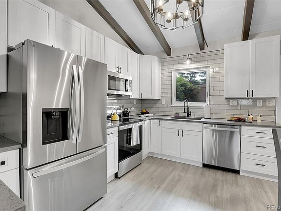 Experience the epitome of modern living in this fully renovated townhome. With meticulous attention to detail, this home boasts a stunning transformation that's sure to impress. Step inside to find a stylish and inviting living space adorned with fresh new vinyl plank and carpet flooring that complements the home's contemporary aesthetic. The heart of the home is undoubtedly the newly designed kitchen, featuring sleek, brand-new cabinetry, high-end stainless steel appliances, and elegant quartz countertops. A classic subway tile backsplash adds a touch of timeless charm. The spa-like bathrooms are equally impressive, showcasing the home's commitment to quality and comfort. Retreat to your private enclosed patio for peaceful relaxation or enjoy the warm summer days at the community pool, just a short stroll away. Enjoy the best of both worlds: urban convenience and outdoor adventure. This townhome offers easy access to shopping, dining, and entertainment options, while also being a short drive from the excitement of downtown Denver. Nature enthusiasts will appreciate the proximity to parks, reservoirs, and the stunning Rocky Mountains. Convenience is key with two reserved parking spots, ensuring hassle-free living. This turn-key townhome is ready to welcome you home. Discover the perfect blend of modern comfort and prime location in this Lakewood gem.