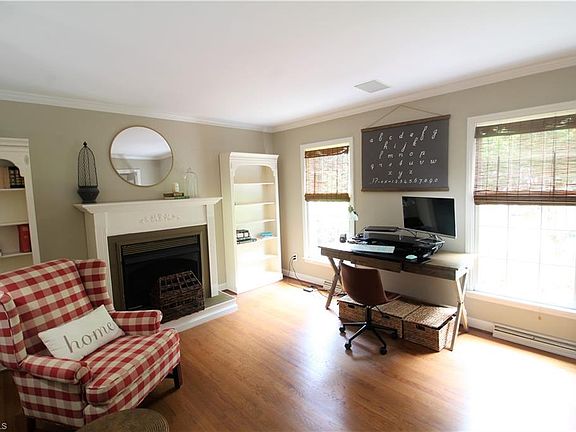 NORTH SHORE Spacious 4 bedroom 3 bath home! This 2 story home sits on a dead end street. Spacious kitchen with eat in breakfast area and bar seating. Large open Kitchen has granite countertops, stainless steel appliances, lots of cabinets, recessed lighting, high arc faucet, tile backsplash, and counter space galore. Large dining room with wainscoting! Fireplaces in the living room, den, and basement. Living room could be used as home office. Huge Primary suite has tray ceiling and updated bath including oversized walk-in shower and double vanity. Lots of updated light fixtures. Spacious sunroom with wet bar area. Large finished basement with built in shelving and fireplace. 3-tiered deck, fenced backyard, nicely landscaped yard, and storage building.