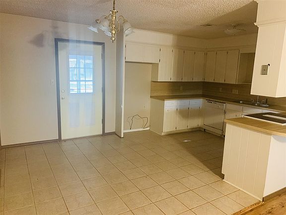 This home is sure to please! Open floor plan with white kitchen cabinetry...3 large bedrooms, 1 1/2 bath. Bathroom complete with walk in bathtub! In the backyard, you will find a large covered back patio, storm cellar, and separate fence for a dog run, as well as a storage building. Spacious sunroom on the front!! This is one you don't want to miss!