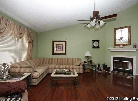 Easy living ranch is ready to move into. Curl up in the vaulted great room with cherry stained hardwood flooring by the wood burning fireplace (convenient gas starter could accommodate gas logs, too). The open and airy layout lets the kitchen & nook area flow directly into the family room--ideal for entertaining or keeping an eye on family members. The sunlit nook area has access to the patio and fenced rear yard. The master suite has a private bath and walk in closet. This great home has more living space than most homes with a similar foot print because the garage has been partially converted into living space--while still retaining storage space. The current owners use the space as a home office and playroom for their family. This home actually has "pops of color" with spring pastels. There's also a detached shed for additional storage. Conveniently located in historic La Grange with charming shops, dining and easy access to I71--not to mention schools close by (not an hour bus ride away). Schedule your showing today!