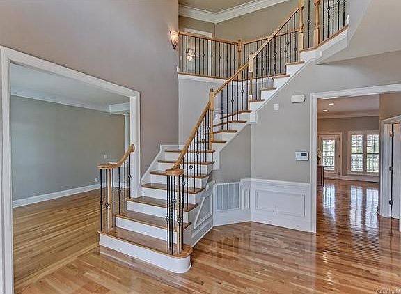 Gorgeous brick beauty on level fenced 1 acre lot w/lush landscaping.Gleaming hardwoods on main,fresh paint & new carpet!This former model home boasts 3 levels of luxurious living w/upgrades galore!Gourmet kitchen,granite,& SS appliances.10'ceilings on main,wide crown molding,custom built in bookcases,3" plantation shutters,exquisite lighting & 10 unique ceiling fans. Large deck w/retractable awning,3 car side load garage w/epoxy floors.Walking distance to shopping/restaurants!Pristine condition!